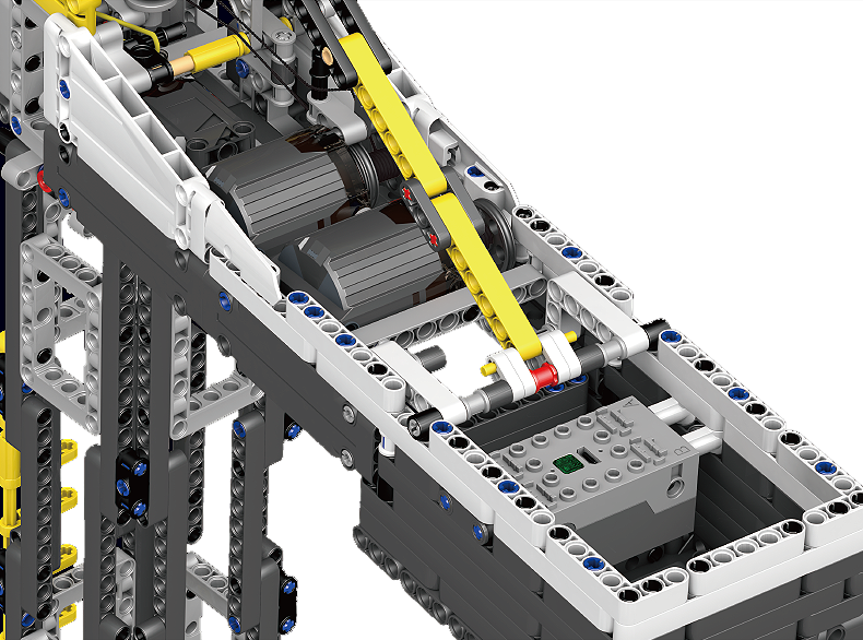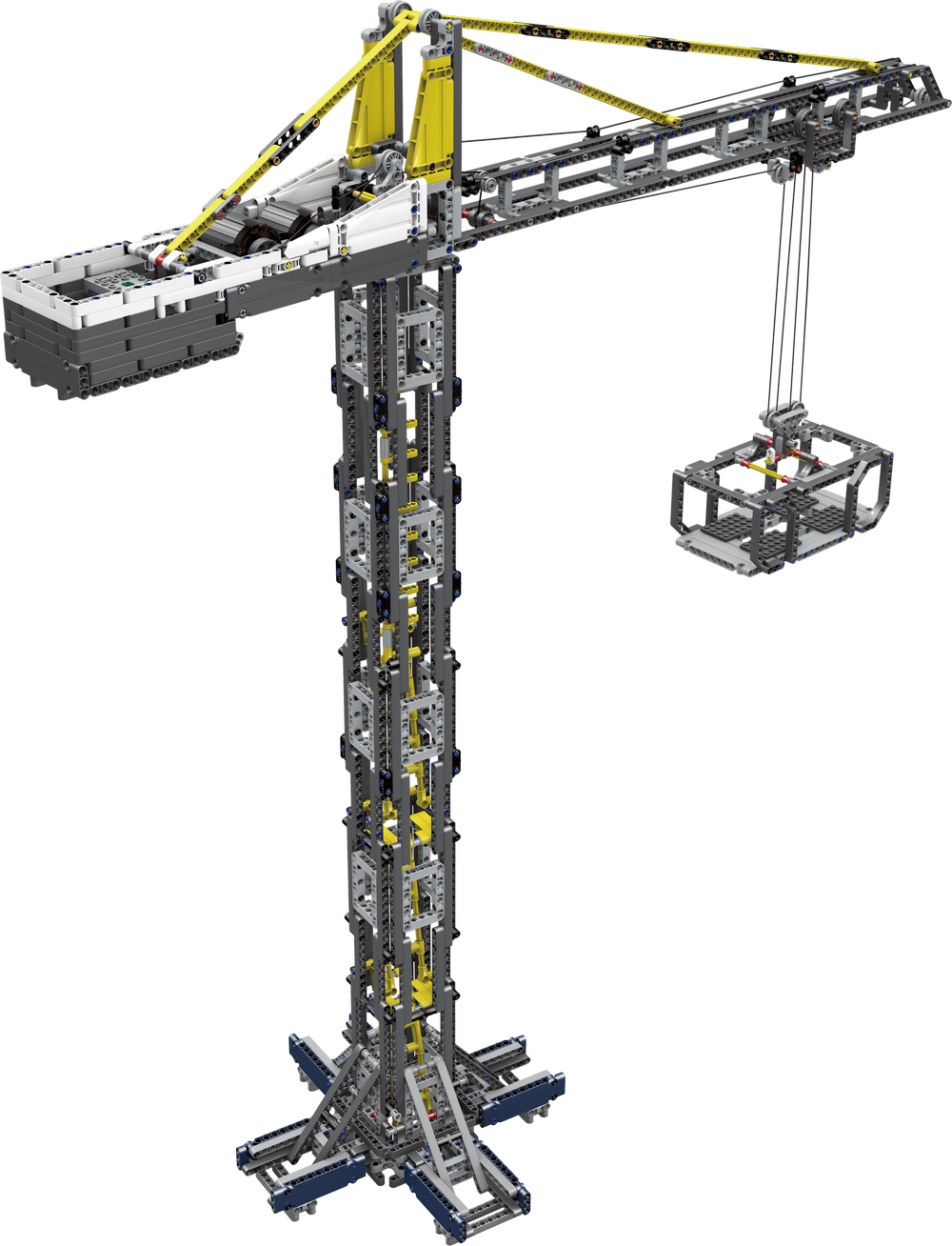 The model comes with a remote control that allows you to control the crane’s movements, including rotating the tower, moving the trolley, and raising and lowering the hook.