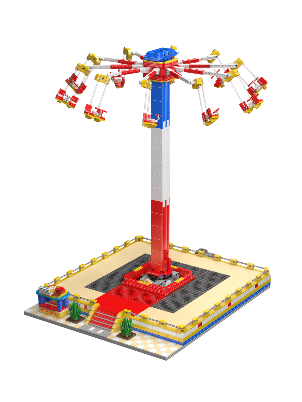 Mould King 11016 elektriline “Flying Chair Ride” atraktsiooni mänguklotside ehituskomplekt. Ehita ja pane kokku üle 1500 klotsi.