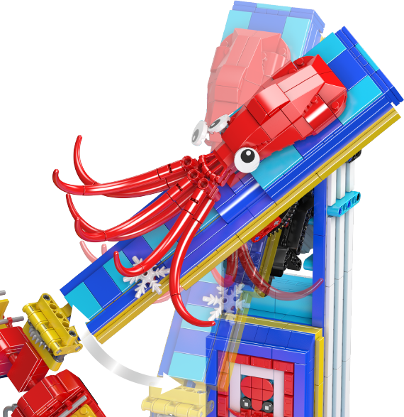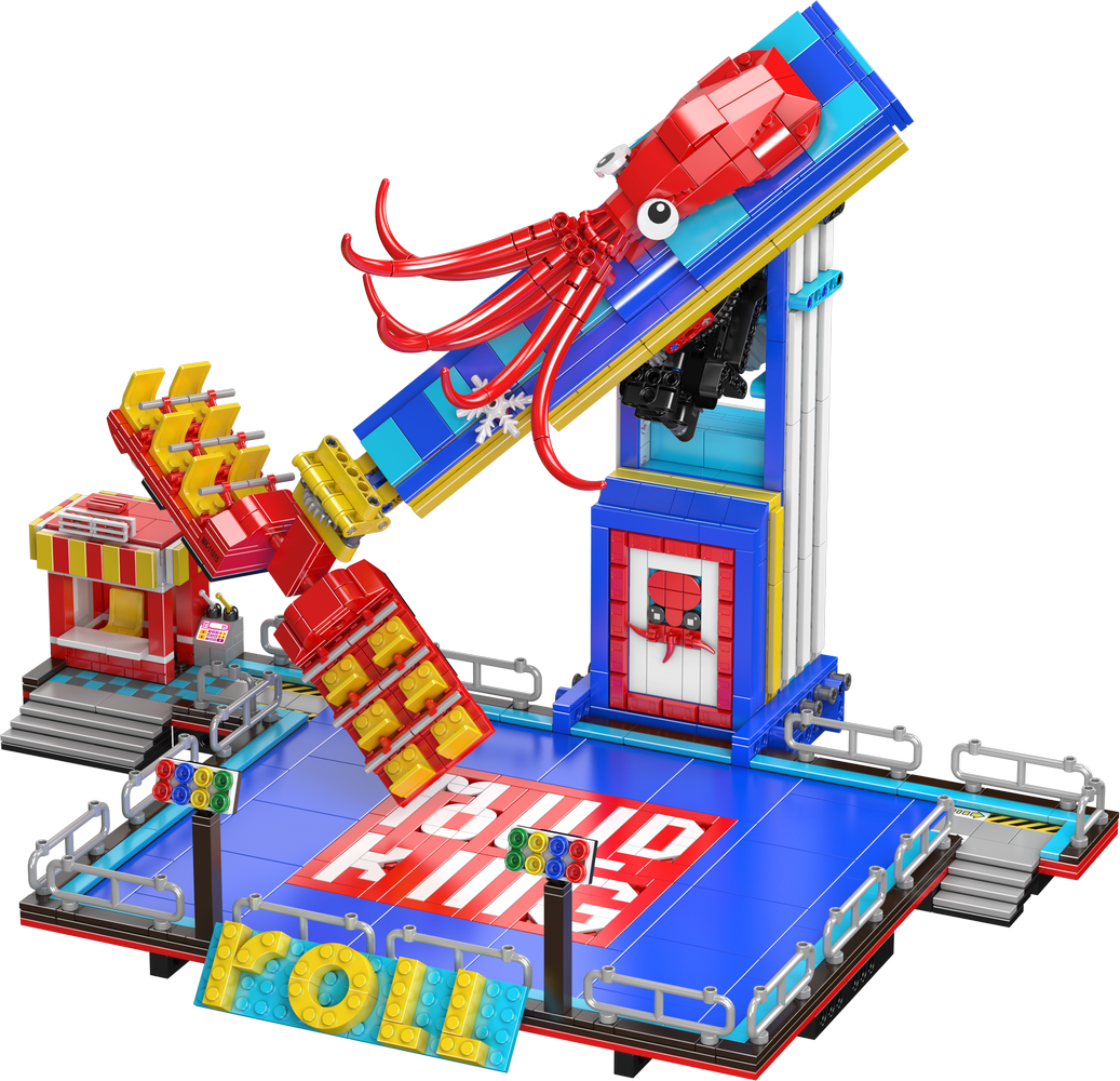 Too lõbustuspargi põnevus koju selle värvika Kaheksajala Kiigeatraktsiooniga! 1668 technik klotsist koosnev pilkupüüdev komplekt sisaldab suurt punast kaheksajalga, kahte gondlit ja erksaid karnevalidetaile.