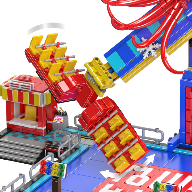 Kui mudel on ühendatud kaasasoleva XL mootori ja akukastiga, ärkab atraktsioon ellu—kiikudes küljelt küljele nagu päris lõbustuspargi atraktsioon.