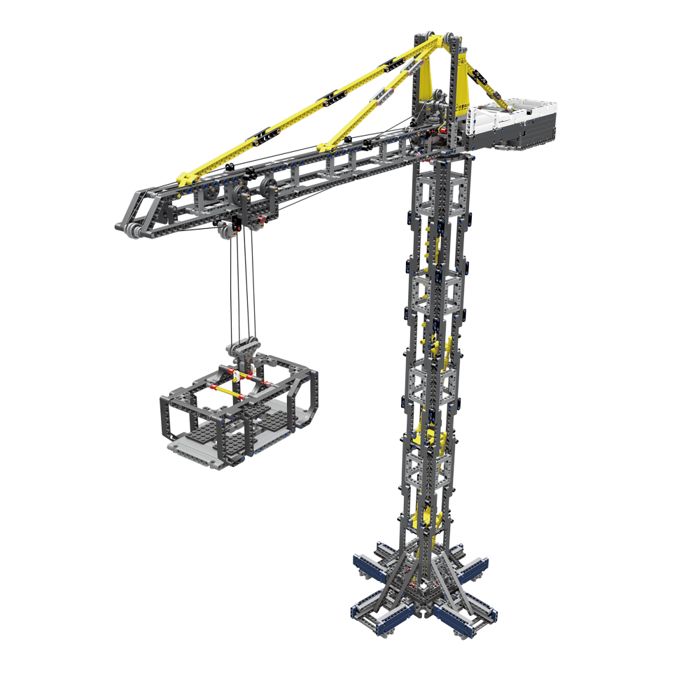The model comes with a remote control that allows you to control the crane’s movements, including rotating the tower, moving the trolley, and raising and lowering the hook.